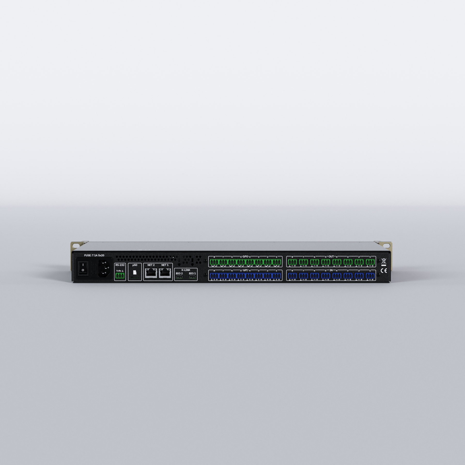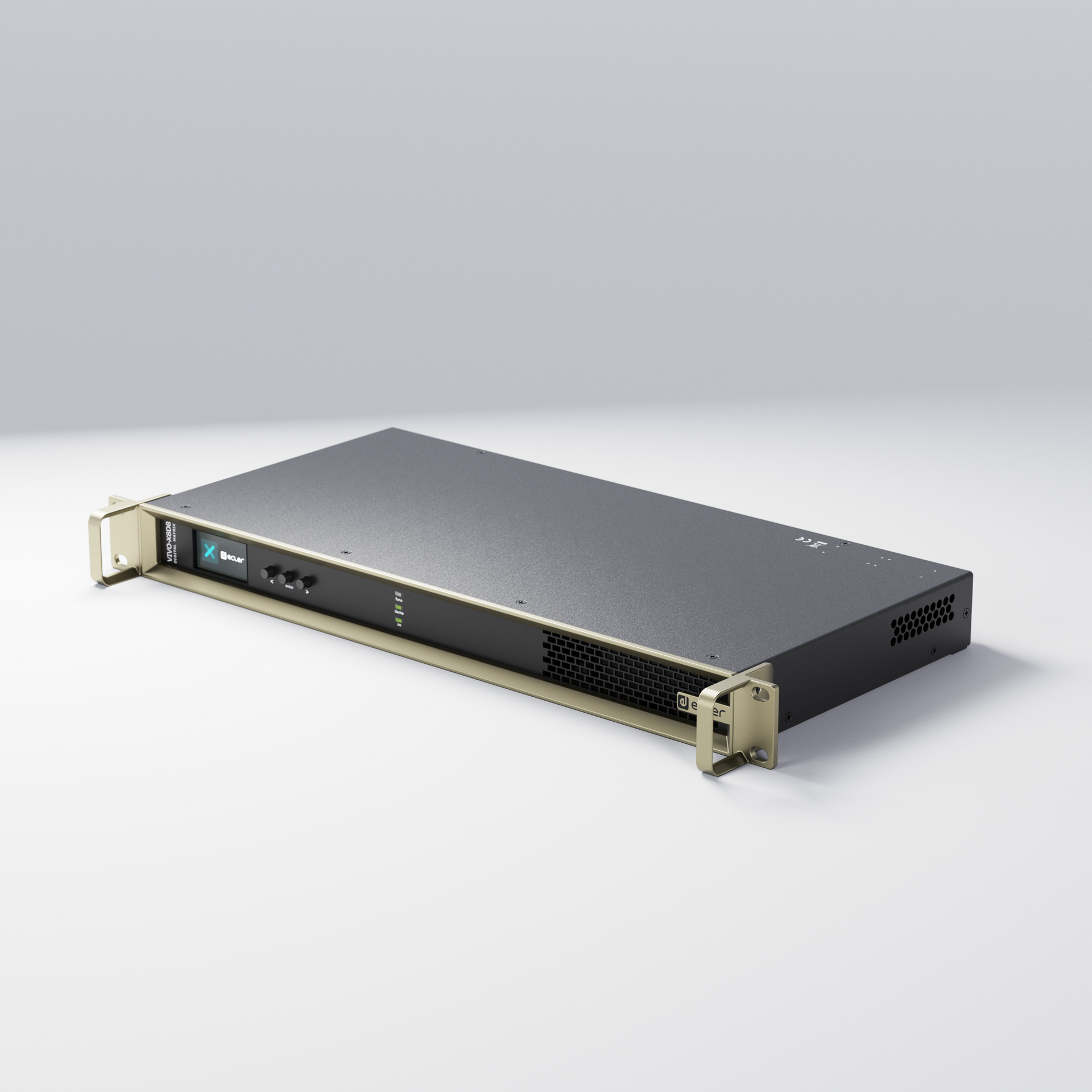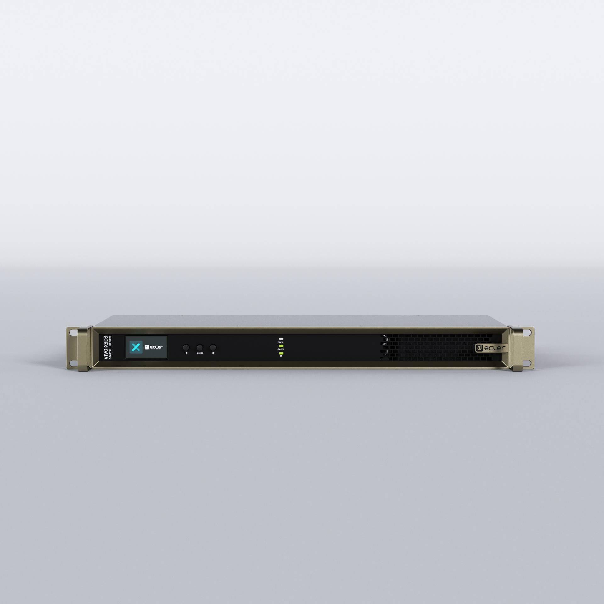 VIVO-X8D8 es una matriz host EclerPLEX con 8 puertos de entrada de audio analógico y 8 de audio Dante®/AES67, 8 puertos de salida de audio analógico y 8 de audio Dante®/AES67, escalable gracias a dos puertos X-link. Se puede conectar una unidad de expansión BIO-X8 (o BIO-X8G) a cada puerto X-link. VIVO-X8D8, actuando como unidad host en un despliegue de EclerPLEX, puede contener múltiples proyectos ejecutándose simultáneamente y servir paneles de control de usuario a los usuarios finales.